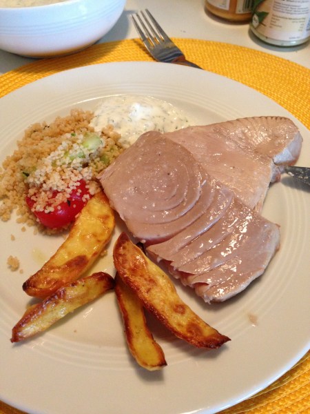 Beilagen Backkartoffelstreifen und Couscoussalat (aus WEBER´S VEGGIE Buch)